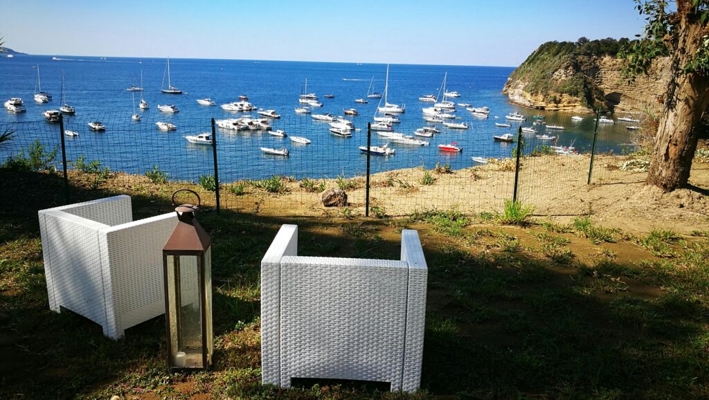 Antica dimora ottocentesca, panoramica a pochi passi dal mare Casa Antonio gode di una vista mozzafiato sulla baia di Ciraccio. La Casa disposta a Sud ovest, beneficia del Maestrale, vento fresco che allieta i caldi pomeriggi estivi. La Casa dispone di un ampio salone-cucina con vista sull’Isola di Ischia, un piccolo studio e ben tre camere da letto di cui una panoramica con accesso diretto al terrazzo, un ampio bagno con vasca, panoramico. Un giardino attrezzato non recintato con due piccoli stagni artificiali. Spazio attrezzato per pranzare o cenare all’aperto. Parcheggio Privato fuori casa. Servizi: – camino – cucina attrezzata – forno – forno microonde – frigocongelatore – tv LCD in tutte le stanze – satellite – digitale – home theatre – dvd – cassaforte – aria condizionata – internet in tutti gli ambienti -pulizie a pagamento -biancheria -posto auto.